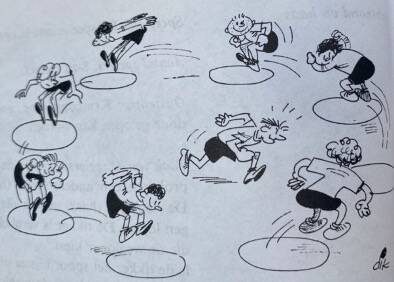 Bij dit spel liggen er allemaal hoepels in een kring, alle kinderen staan in 1 hoepel ook staat er 1 iemand in het midden. De bedoeling van het spel is dat degene die in het midden staat zo snel mogelijk in een lege hoepel moet gaan staan, alleen dat is nog niet zo makkelijk. De kinderen die in een hoepel staan die springen de hele tijd met de klok mee in de volgende hoepel. De kinderen blijven dus de hele tijd springen. Degene die in het midden staat mag rennen naar een hoepel die vrij is en mag daarin gaan staan. Als degene die in het midden staat in een hoepel staat is degene die niet aan het opletten was degene die nu in het midden moet staan en zo gaat dit door. Om het makkelijker te maken voor de loper kan je ook meerdere hoepels toevoegen aan het spel die leeg zijn.