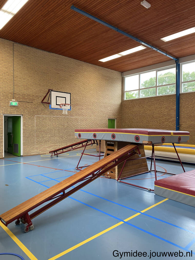 Dit is heel leuk maar kan best nog wel spannend zijn voor sommige kinderen, dit omdat het best wel heel hoog is. Je kan bij dit toestel voor verschillende dingen kiezen. Je kan zoals op de foto te zien is kiezen voor met de bank omhoog en dan eraf springen of met de bank naar beneden. Je kan er ook voor kiezen om de dikke mat te vervangen door de bank, dus dat je 1 rechte lijn krijgt.